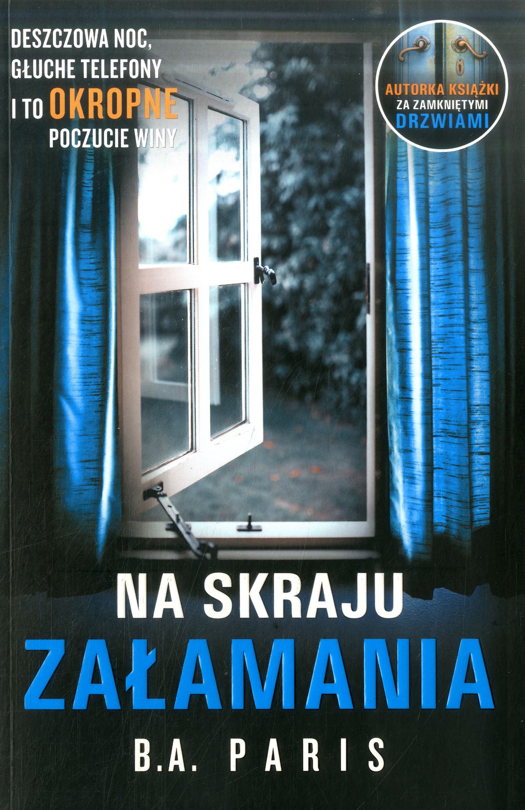 ZEMSTA JEST JEDNAK SŁODKA. B.A. Paris powieścią "Na skraju załamania" może spokojnie pretendować o tytuł mistrzyni thrillera psychologicznego. Misternie skonstruowana fabuła, intrygujące portrety bohaterów, ciągle wzrastające napięcie i ta bezustannie podsycana w czytelniku ciekawość... Nie można być znudzonym jej opowieścią. Główną jej bohaterką jest Cass - młoda mężatka, z zawodu nauczycielka. Pewnej burzowej nocy wraca do domu przez las.